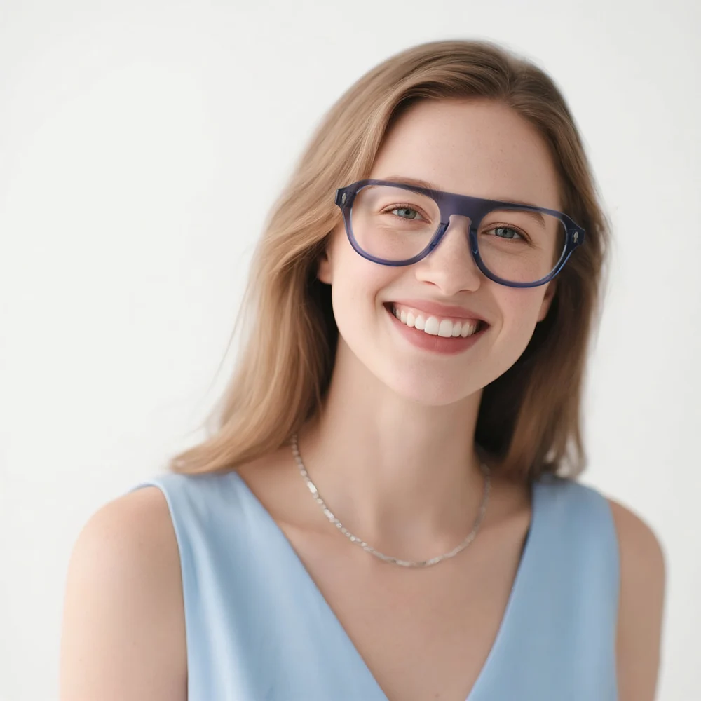 Want glasses that make professionalism look this good? Meet your new power frames! These sophisticated Full-rim glasses feature a sleek silver Acetate upper with crisp angular lines that command attention in any boardroom. The subtle transparent lower frame keeps the look modern and approachable. Ultra-lightweight with spring hinges for all-day comfort, they're perfect for back-to-back meetings or late-night work sessions. The anti-reflective coating reduces eye strain during screen time, making them as smart as they look. For those who want authority with approachability, these frames strike the perfect balance.