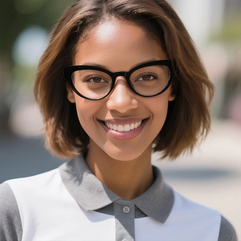 Lexie is the perfect choice to complete your distinctiveness! Showcasing a lovely design with cute cateye-shaped rims and a tight bridge connecting the rims, Lexie is modern and stylish, radiating your pure confidence. The confidence is further enhanced by the semi-transparent property, revealing its inner structures in the temple area, giving away a sophisticated impression. Equipped with compact hinges and firm tapering temples all the way to the well-curved tips, you can instantly be comfortable wearing it. Made out of TR90, a thermoplastic material, these glasses are not only light and flexible but also very durable. Lexie is available in two color options: black and brown, each of which is sprinkled with glittering tiny spots, adding a catchy vibe to your appearance. Choose the color that best matches your distinctive style!