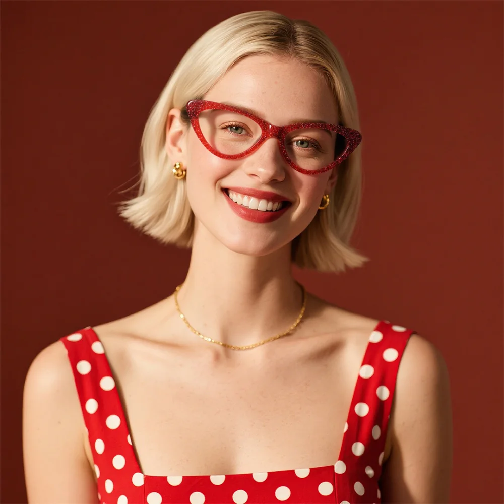 Looking to make a bold fashion statement? These red cat-eye frames are your perfect match. Crafted from durable acetate, they feature a full-rim design with spring hinges and custom engraving for a personalized touch. Ideal for both professional settings and casual outings, these glasses seamlessly blend style and functionality. Plus,at an affordable price, they offer an affordable way to elevate your eyewear collection.