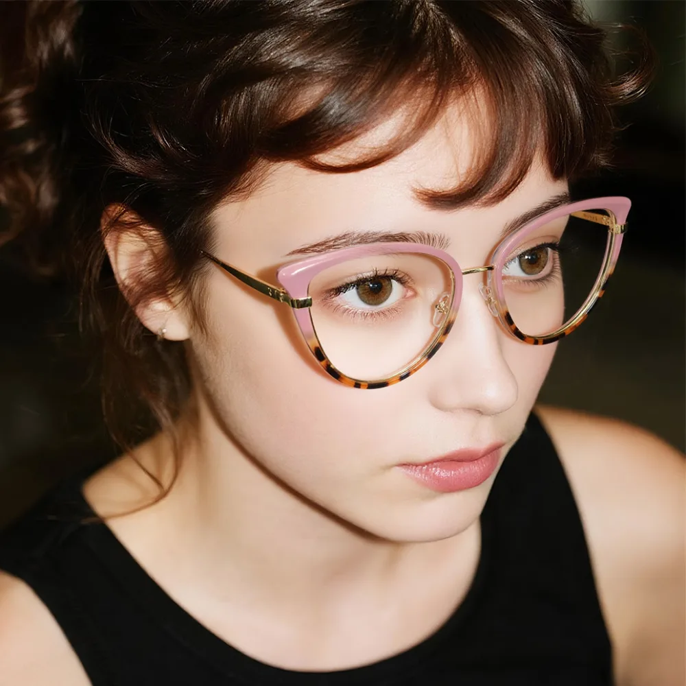 Looking to make a statement? These eyeglasses feature a striking tortoiseshell pattern that exudes timeless elegance. The cat-eye frame adds a touch of retro flair, enhancing your facial features with a bold yet sophisticated look. Equipped with unique spring hinges, they offer enhanced comfort and durability for daily wear. Whether you're heading to the office or out for a casual day, these frames seamlessly blend style and practicality, making them a versatile choice for any occasion.