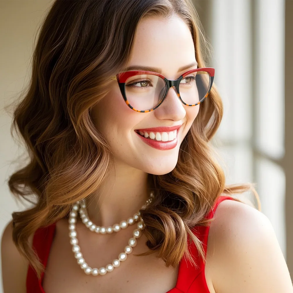 Looking to make a bold fashion statement? These eyeglasses feature a striking red cat-eye frame that exudes classic elegance. Crafted with spring hinges and full-rim design, they offer both comfort and durability. Ideal for any occasion, from professional meetings to casual outings, these glasses seamlessly blend style and functionality.