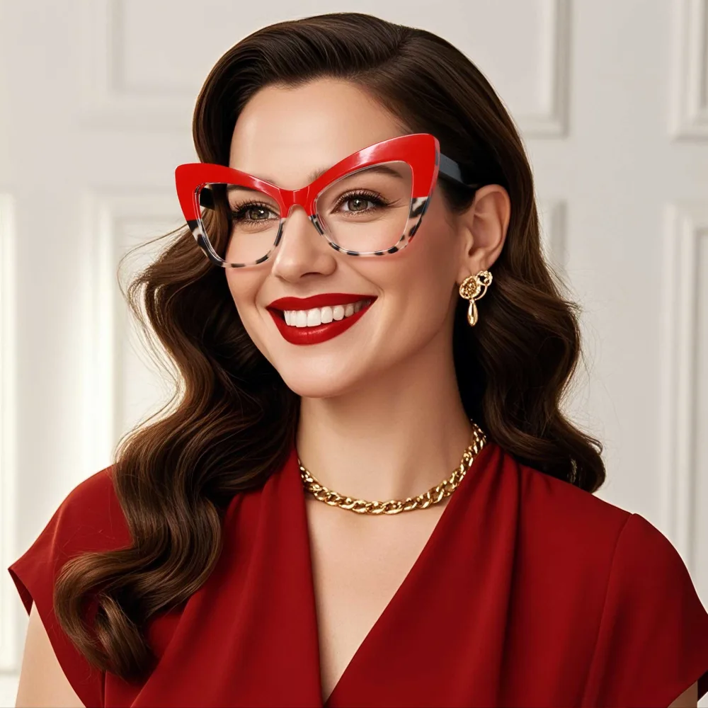 Oh, snap—these eyeglasses are straight fire! With a vibrant red hue that pops, they bring a bold twist to the classic rectangle frame. Perfect for jazzing up your workday or adding flair to a casual hangout, these frames are all about versatility. What’s the kicker? Their standout color and sleek design make them a unique vibe, effortlessly blending edgy style with everyday wear. Whether you’re at a meeting or grabbing drinks, these glasses are here to steal the show!