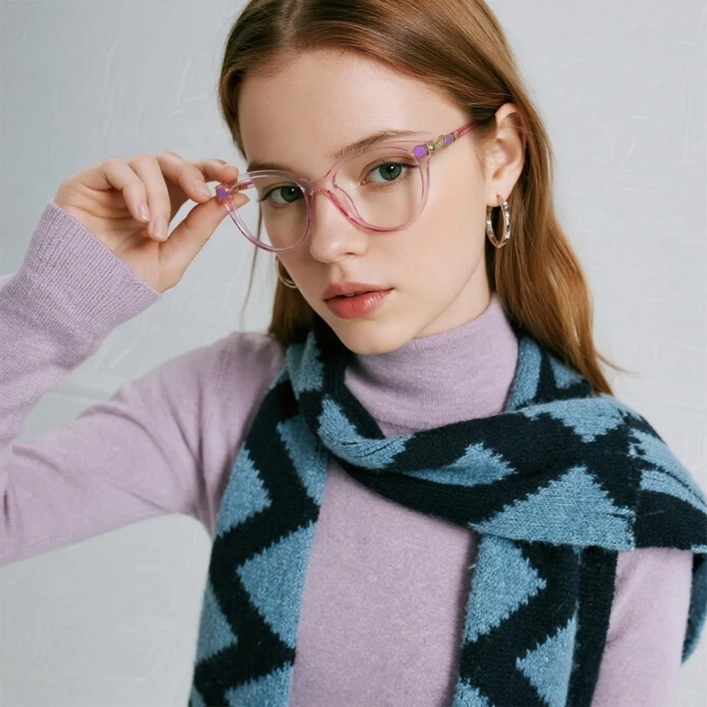 Hey there! If you’re after eyeglass frames that mix cuteness with daily practicality, this one’s a must-check! It comes in lovely colors like pink, black, and blue—easy to spruce up any outfit, whether casual or neat. The full-rim design looks sleek, and at 18g, it’s light enough for all-day wear without discomfort. Made of durable TR90, it holds up well to daily use. Perfect for work, coffee runs, or weekend hangs. It fits most PDs and works with progressive lenses too—stylish, comfy, and totally reliable!