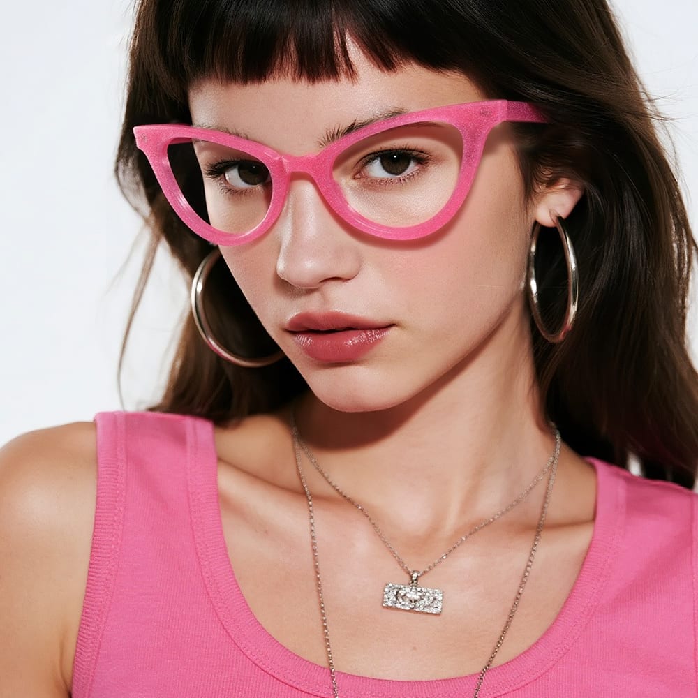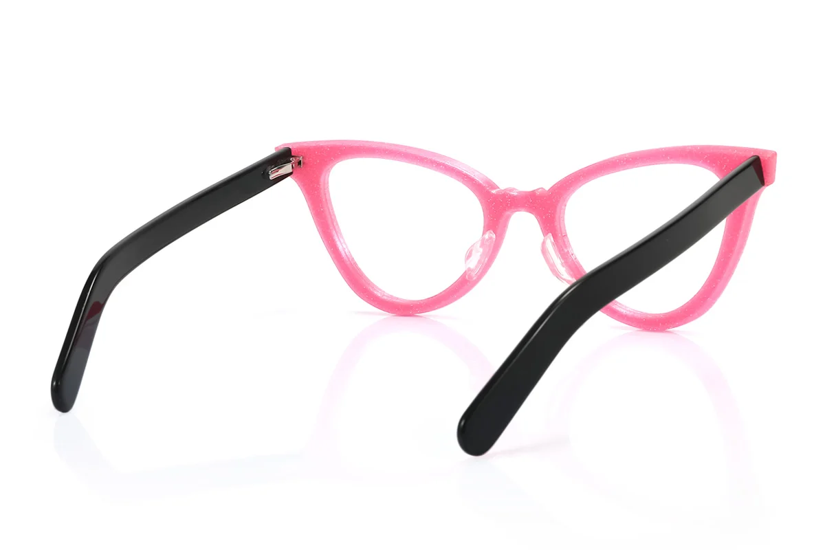 Hey guys, this eyeglass frame is total eye candy—you gotta check it out! It has a full-rim design that looks gorgeous, and comes in lovely colors like blue, grey, and pink to suit different styles. With spring hinges for a snug, flexible fit and weighing 28g, it’s super comfy for all-day wear—whether you’re at work, out shopping, or hanging with pals. It works with progressive lenses too, blending beauty and practicality perfectly!