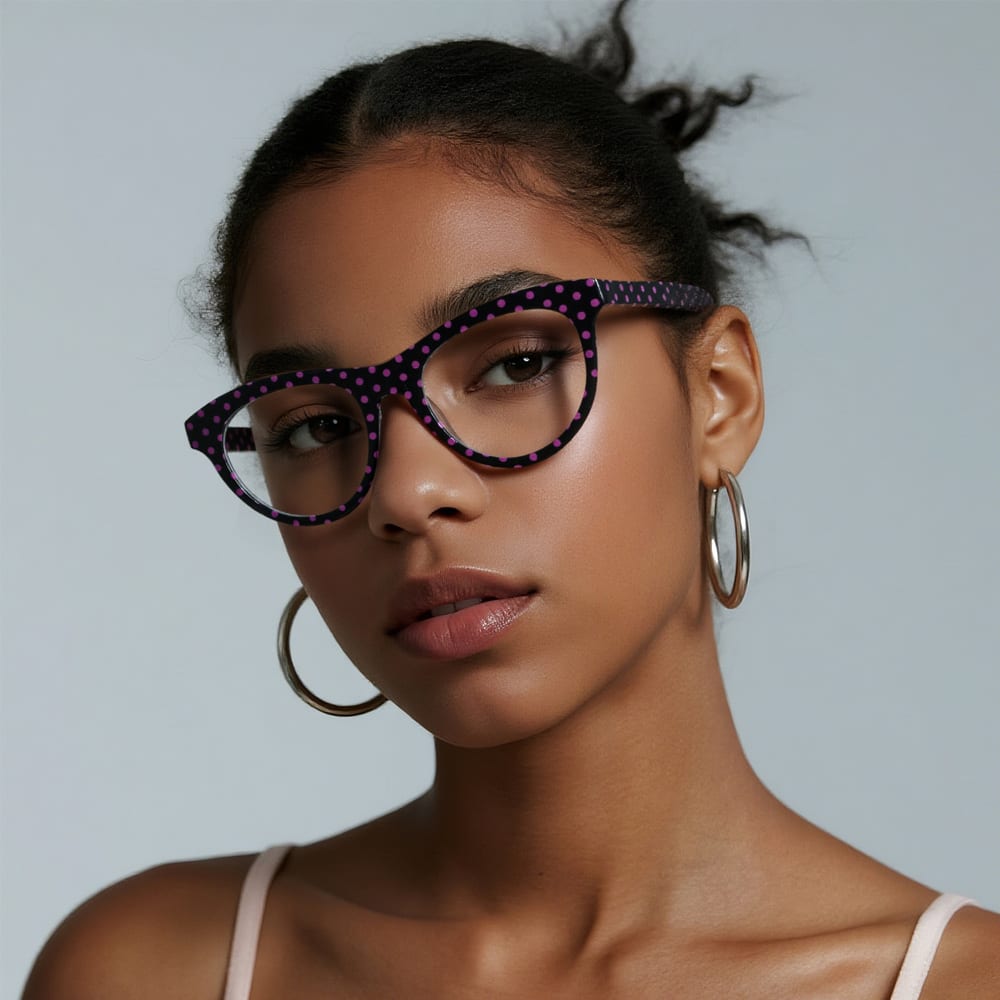 Hey style mavens! These eyeglass frames are a must-have for your everyday rotation. With a sleek round frame silhouette and a sophisticated understated polka dot color, they effortlessly elevate any look. The standout perk? Ultra-soft temple arms that stay comfy against your skin, no matter how long you wear them. Perfect for café work hours, weekend strolls, or evening hangouts—timeless style that fits every moment of your day.