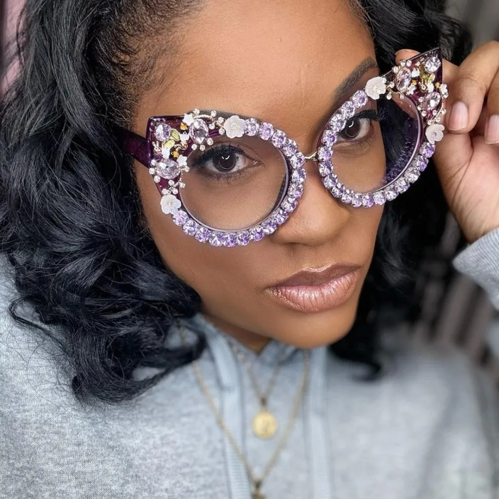 Step into the spotlight with these dazzling purple cat-eye frames! Their full-rim design, adorned with gorgeous rhinestones, adds a touch of glamour to any ensemble. Crafted from durable plastic, they're perfect for special occasions or whenever you want to make a statement. Plus, the option for custom engraving lets you personalize them to reflect your unique style.These eyeglasses offer an affordable blend of fashion and function for any occasion.