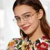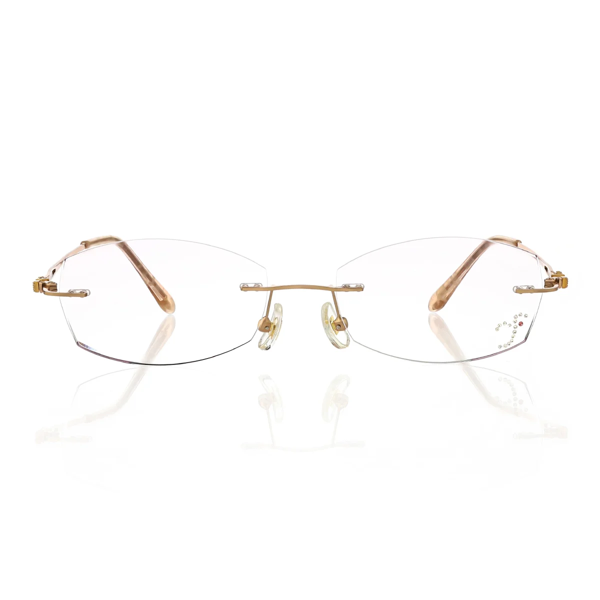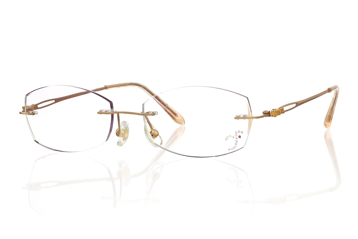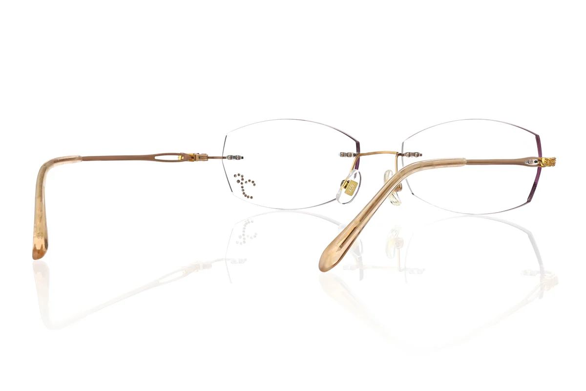 Look at this stunning gold eyeglass frame! It’s a medium rimless style made of premium titanium, an ultra-light 17g for ultimate all-day comfort, with flexible spring hinges for a perfect snug fit. Boasting a classic and gorgeous design, it fits daily wear, office work, casual outings and formal events perfectly, and its wide RX range caters to various vision needs effortlessly.