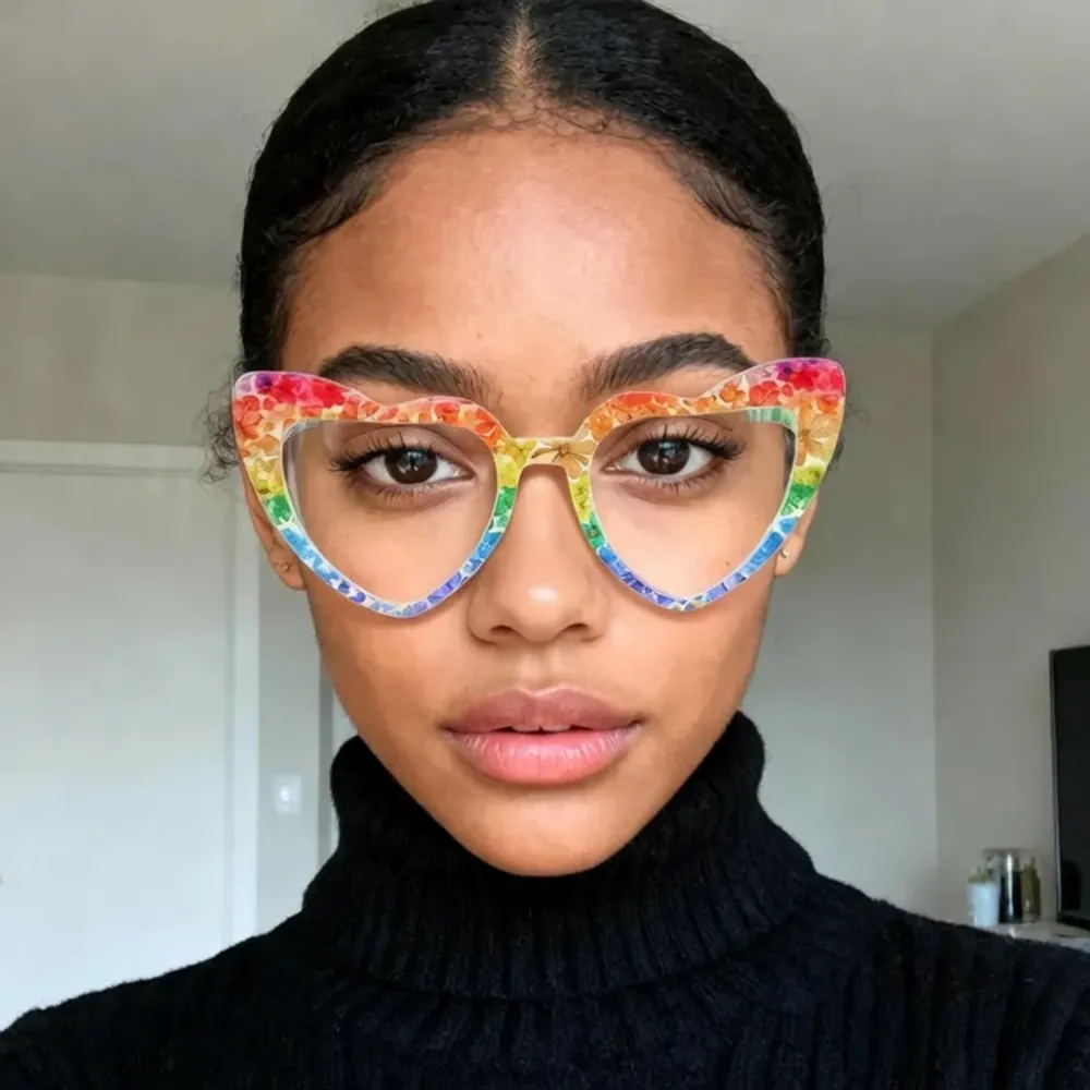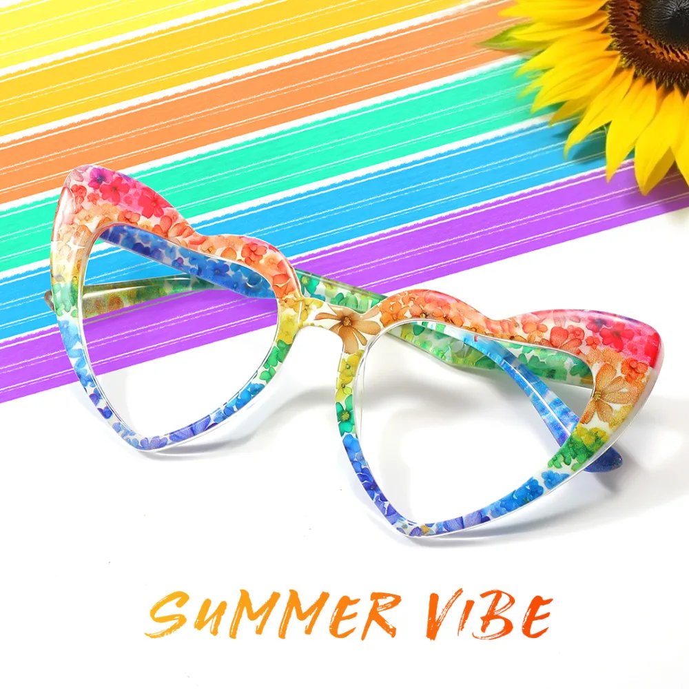 5/5. Absolutely love these frames. So vibrant and colorful. Colorful floral with a heart shape. Prescription fits well with frame. Frame fits well.