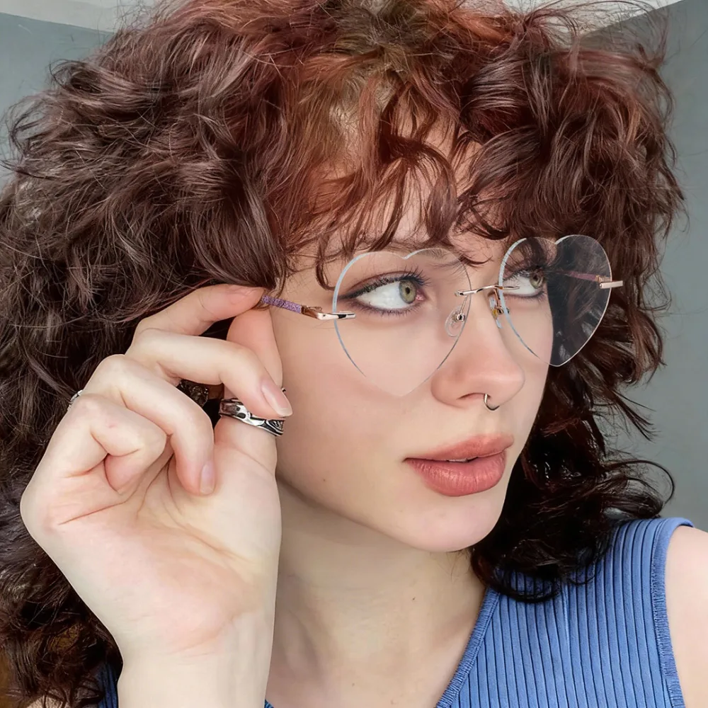 Isn’t this a lovely pair of eyeglasses? In a sweet pink shade heart-shaped with a sleek rimless design, they exude a balanced, elegant vibe. Made of premium titanium, they’re incredibly lightweight (only 23g) for all-day comfort. Fitting medium PD 62-66 perfectly, they suit a wide prescription range. Ideal for office meetings, casual outings or daily commutes, they blend subtle style with practicality—perfect for anyone who loves understated charm!
