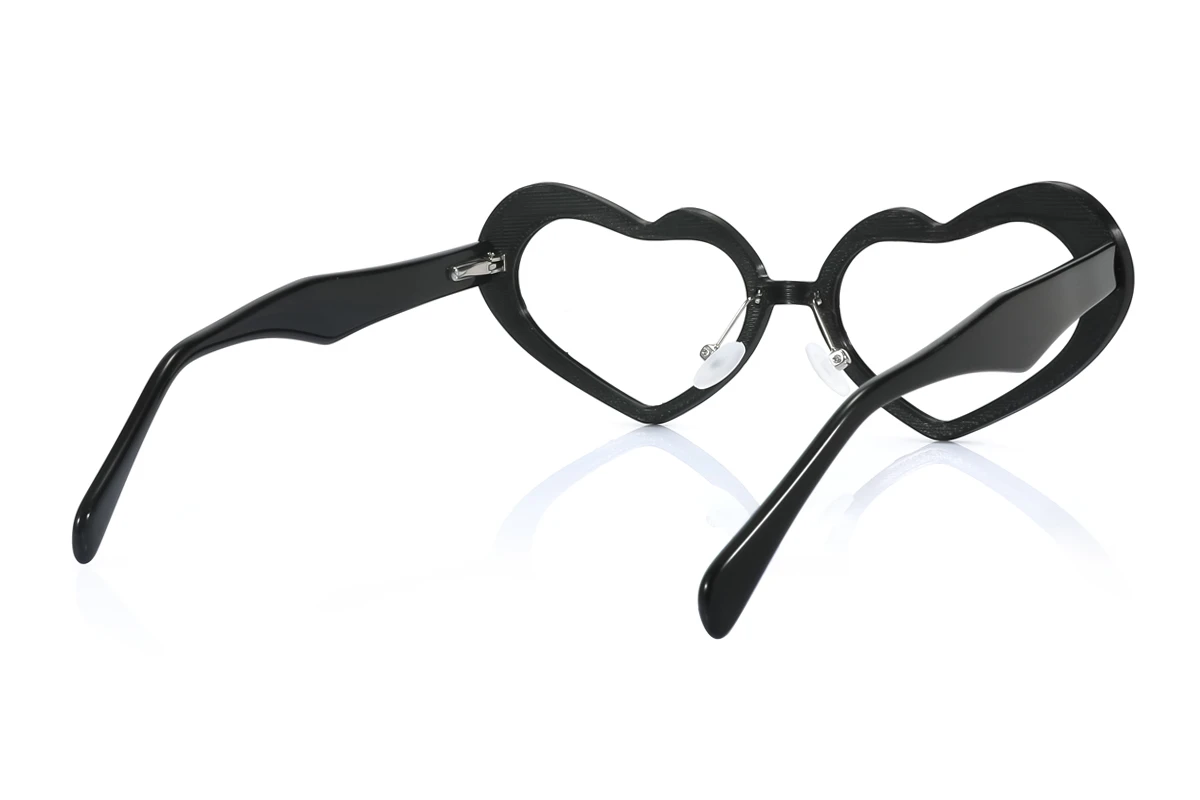 Check out this sleek Heart shaped frame! Crafted from sturdy plastic with handy spring hinges, it fits medium faces (PD 62-66) and offers a comfy wear for work, daily life and casual outings. It supports a wide Rx range and progressive lenses, striking a perfect style balance. The well-designed dimensions ensure a snug fit, making it a practical and stylish choice for all-day vision correction.