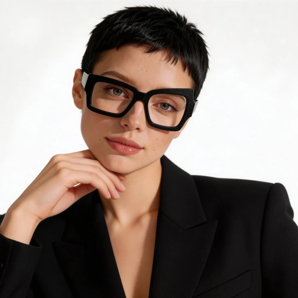 Check out this chic pair of eyeglasses! In a classic black hue with a solid Irregular frame, it’s made of mix & match material for a unique style that balances fashion and utility. Fitted with spring hinges for a flexible, comfy fit, it supports progressive lenses and a wide Rx range to meet diverse vision needs. Perfect for office days, daily errands or casual hangouts, it’s a timeless pick for everyday stylish wear.