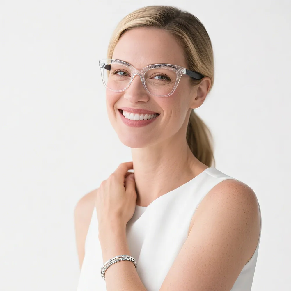 Be stylish, be yourself! Offering a simple design with rectangle rims and a firm bridge connecting the rims, Taliesin is modest and trendy. You may notice the transparent property, especially in the temple area, revealing its inner structure, adding a sophisticated vibe to your look. Equipped with crafty hinges and minimalist temples all the way to the well-curved tips, you may be instantly comfortable wearing it. Made out of TR90, a thermoplastic material, these glasses are not only light and flexible but also very durable. Taliesin is available in three color options: blue, brown, and red, each of which is slightly adorned with little sparkle spots sprinkling the whole frame. Choose one that best represents yourself!