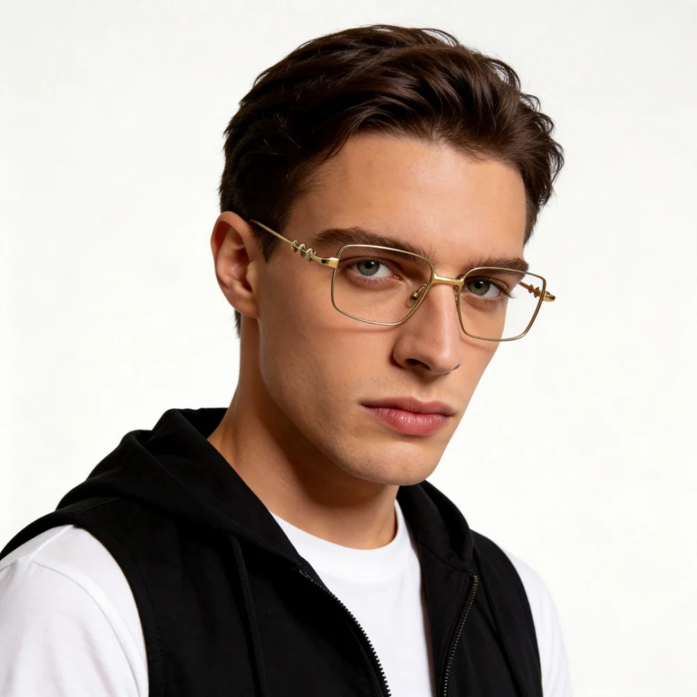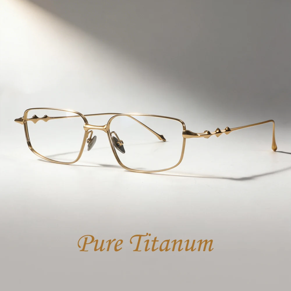 Whoa, this gorgeous gold full-rim square eyeglass frame is a total showstopper! Crafted from premium titanium and just 10g, it’s ultra-light with spring hinges, fitting extra-large faces (PD 68-80). It supports a super wide Rx range and progressive lenses, its stunning style shining in daily life, work, or any casual outings for all-day comfy and chic wear.