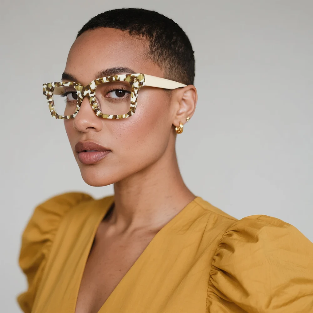Need frames that make a statement without saying a word? These bold rectangular glasses are pure eye candy! Featuring a striking two-tone design with sleek black fronts and trendy translucent temples, they're equal parts professional and fashion-forward. The angular frame adds structure to your look while the lightweight materials keep you comfortable during long workdays or weekend adventures. With their versatile vibe, they transition effortlessly from office meetings to after-hours hangouts. The subtle metallic accents add just enough shine to stand out. Who says practical can't be stylish?