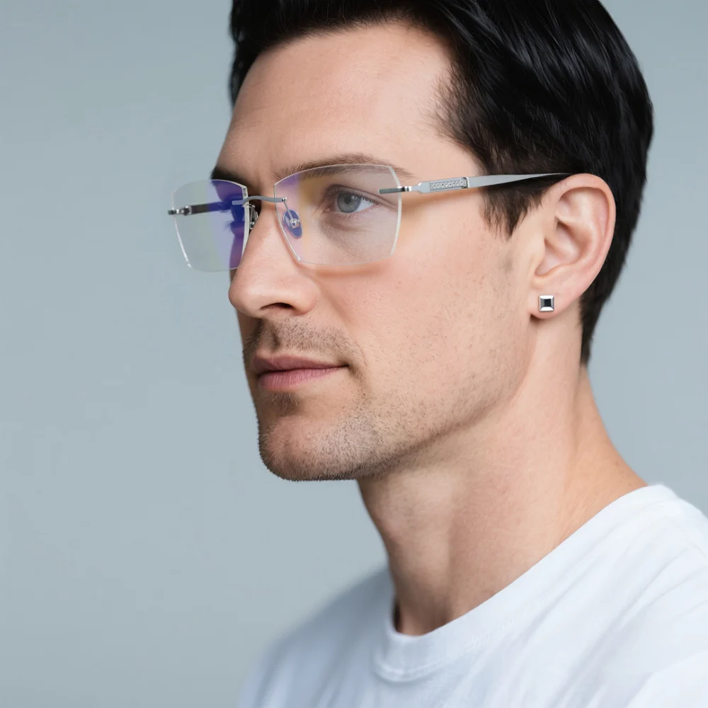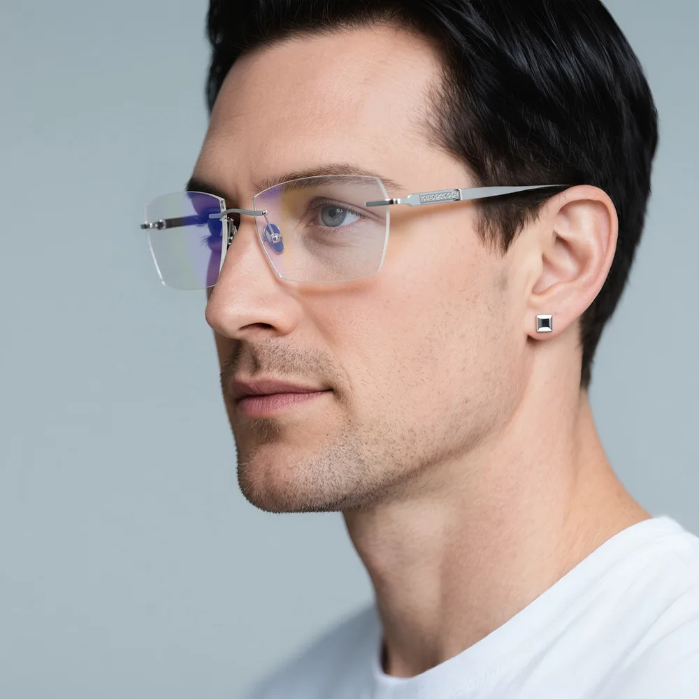 Looking for a pair of glasses that effortlessly blend style and comfort? These sleek silver rectangular frames are your perfect everyday companion! With a timeless, classic design, they add a touch of sophistication to any look—whether you're at work, out with friends, or just running errands. The lightweight titanium build ensures all-day comfort, while the rimless design keeps things modern and minimal. Ideal for both casual and professional settings, these glasses are versatile enough to match any outfit. Plus, the silver hue adds a subtle shine that elevates your style without being over the top. Simple, chic, and totally wearable—what more could you ask for?