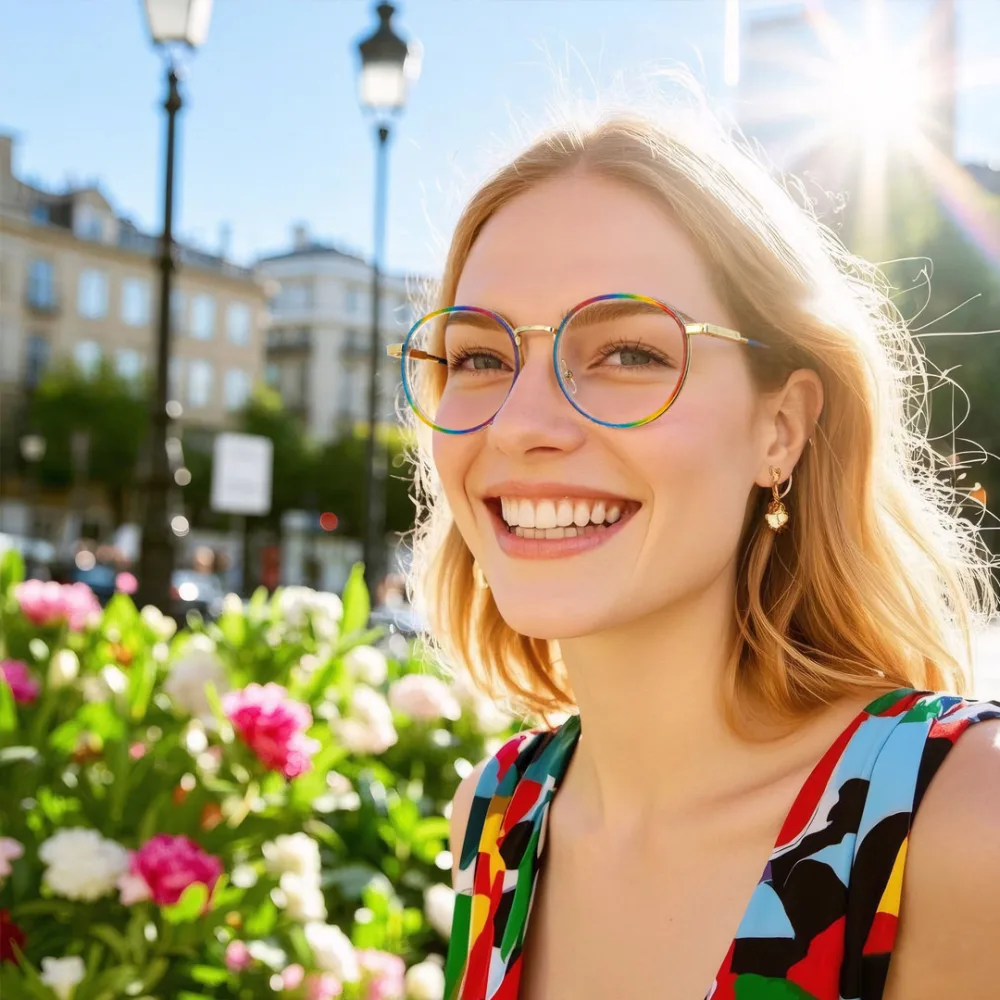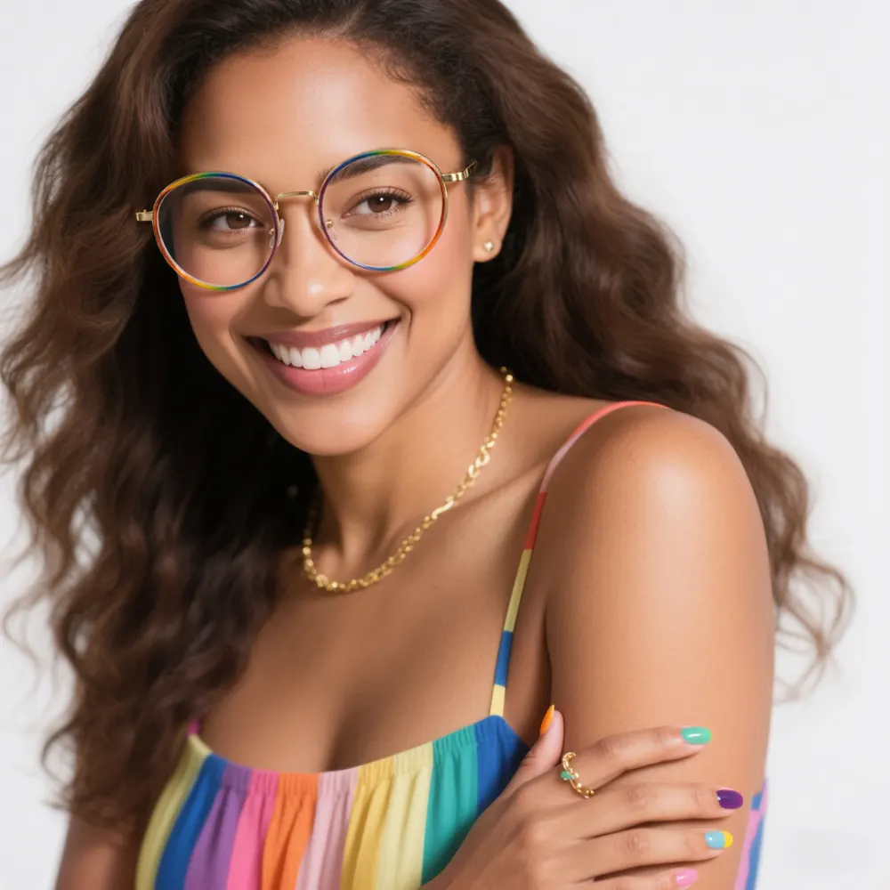Looking to infuse a burst of color into your eyewear collection? These multicolor, full-rim frames boast a classic round-oval shape, seamlessly blending retro charm with modern flair. Crafted from a mix of materials, they offer both durability and style. Equipped with spring hinges, these glasses ensure a comfortable fit for daily wear. Ideal for creative professionals or anyone eager to make a vibrant fashion statement, they effortlessly transition from the office to social gatherings.