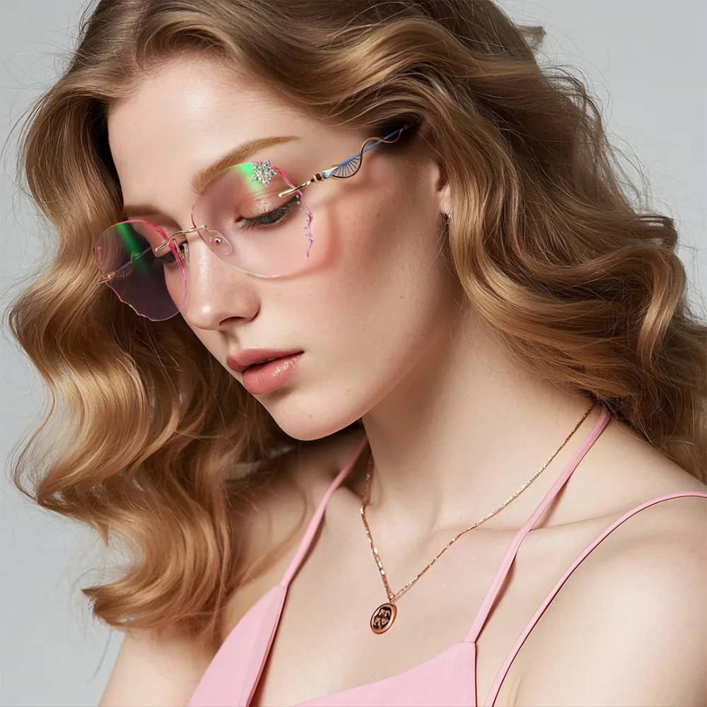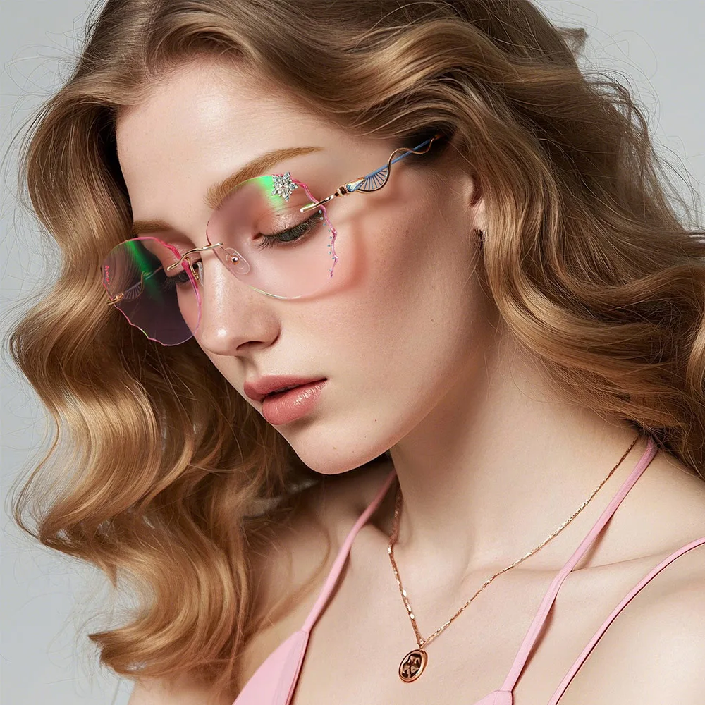 These eyeglasses are designed to impress! The unique pink cat-eye shape, paired with irregular edges, brings a fresh, retro vibe that’s hard to ignore. Rhinestone details around the frame add a touch of glamour, making them perfect for special nights out or adding a little sparkle to your daily look. Handmade for a refined touch, they combine comfort with style. Whether you're attending a chic event or just want to elevate your everyday outfit, these frames will help you shine with playful sophistication.