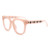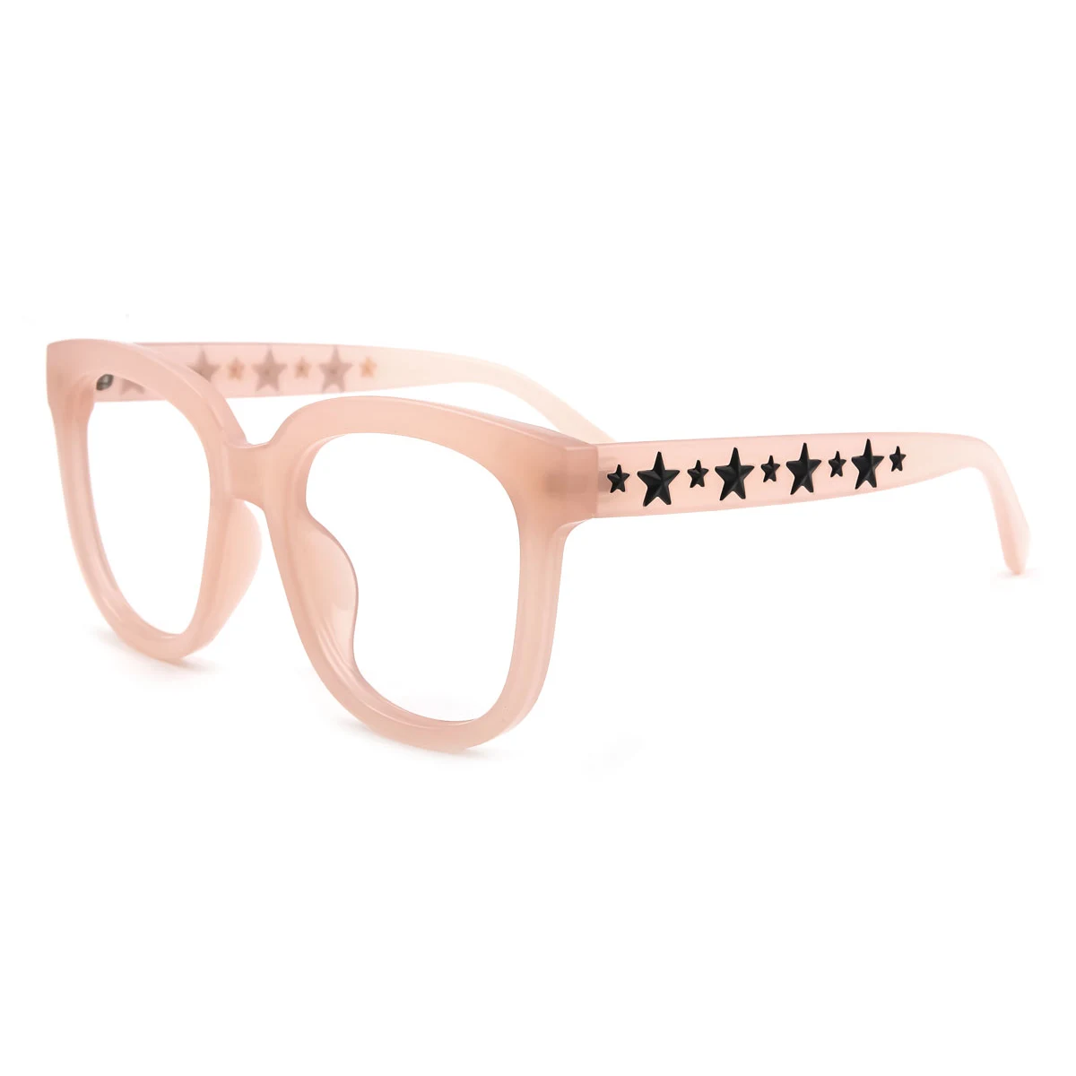 They are pretty sturdy. These are set up for distance. Good bedtime watching tv glasses. They color is soft pink semi opaque guess frosted. The black stars are raised and embedded. Comfy glasses.