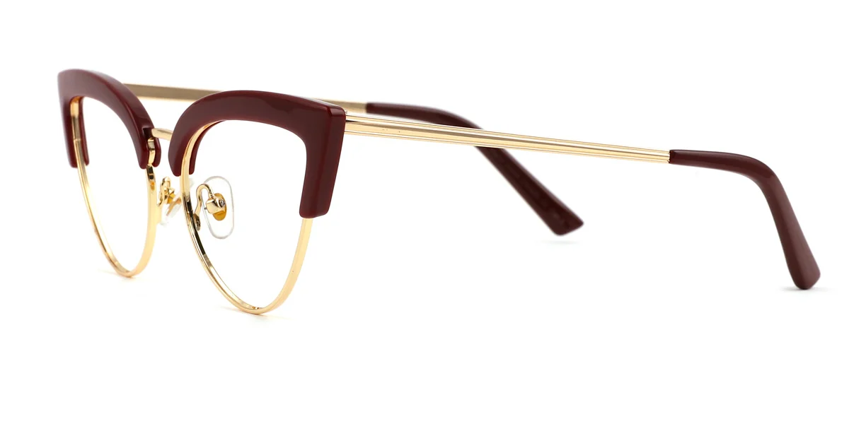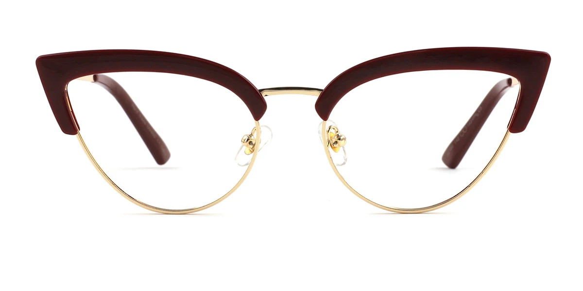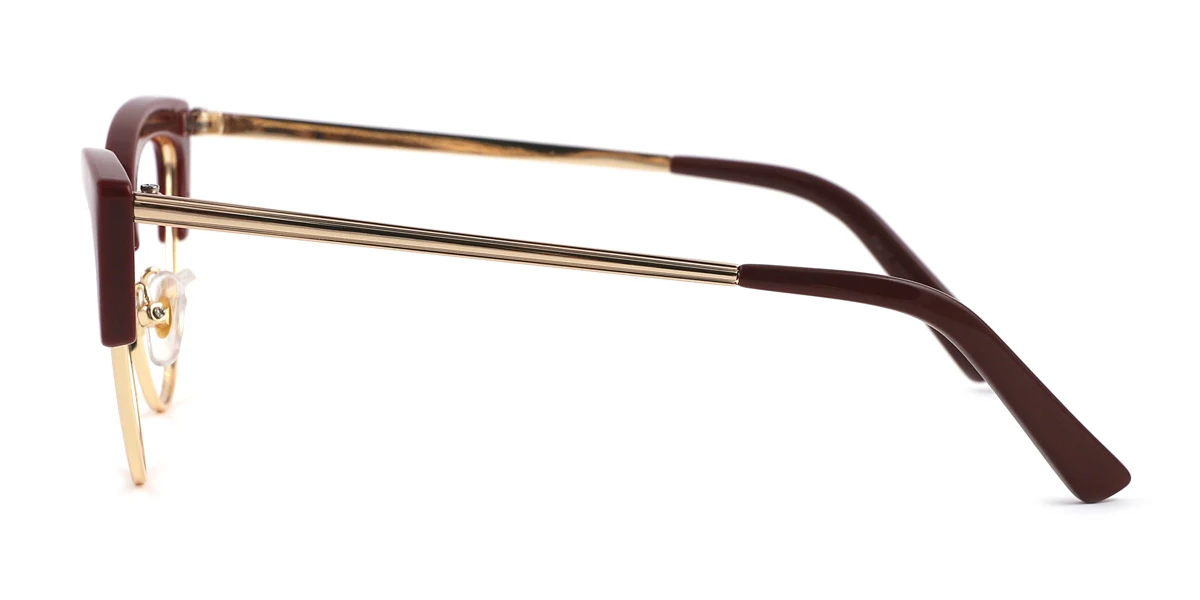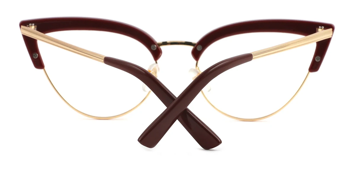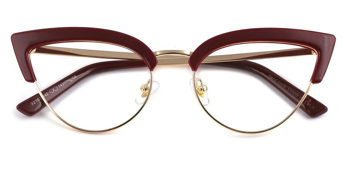 Intensify your authentic charm with Anthea! Presenting bold design with lovely cateye-shaped rims and a majestic solid bridge connecting the rims, Anthea is modern and stylish, giving away a fashionably catchy impression. The impression is further enhanced by the dark red and glossy gold color proportionally furnishing the streamlined frame, creating a prestigiously elegant vibe to your appearance. Equipped with luxurious-looking nose pads, crafty hinges, and smoothly straight temples all the way to the soft-textured tips, you can find instant comfort wearing it. Made out of mixed material, a combination of metal and plastic, Anthea is light and flexible, making it perfect for any occasion in your daily life.