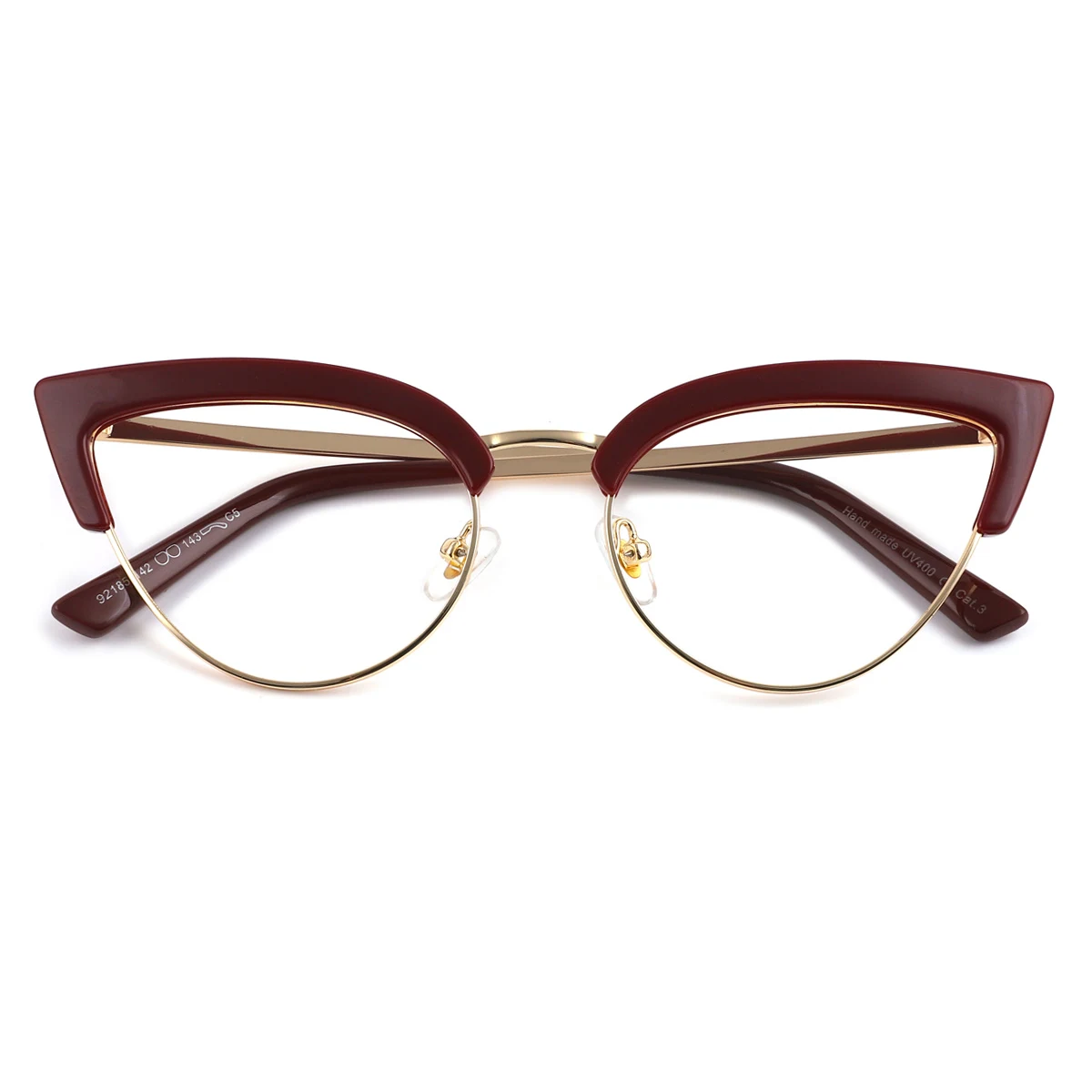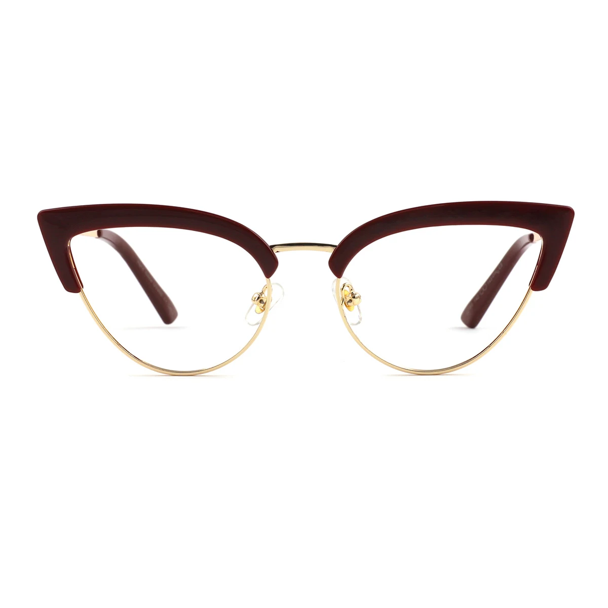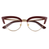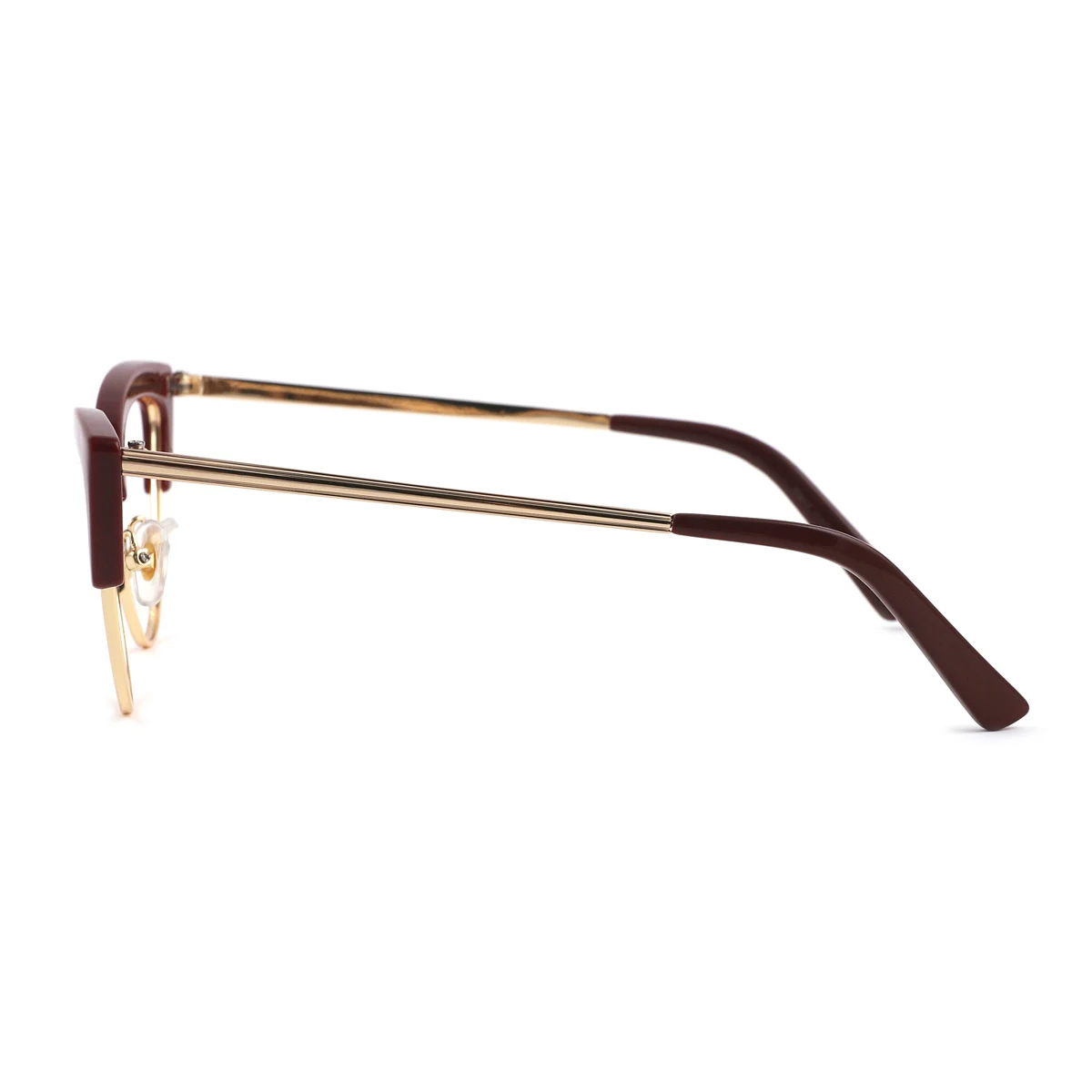 Intensify your authentic charm with Anthea! Presenting bold design with lovely cateye-shaped rims and a majestic solid bridge connecting the rims, Anthea is modern and stylish, giving away a fashionably catchy impression. The impression is further enhanced by the dark red and glossy gold color proportionally furnishing the streamlined frame, creating a prestigiously elegant vibe to your appearance. Equipped with luxurious-looking nose pads, crafty hinges, and smoothly straight temples all the way to the soft-textured tips, you can find instant comfort wearing it. Made out of mixed material, a combination of metal and plastic, Anthea is light and flexible, making it perfect for any occasion in your daily life.