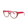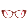 I love this frame and they have fabulous customer service. I had ordered a different pair that broke when I opened them. I contacted the company and they immediately offered to replace my glasses. I got this pair instead of the original order. They are fabulous. My prescription is correct and they are comfortable. I added two photos with different lighting so you can see them well. Subtle but cute print.
