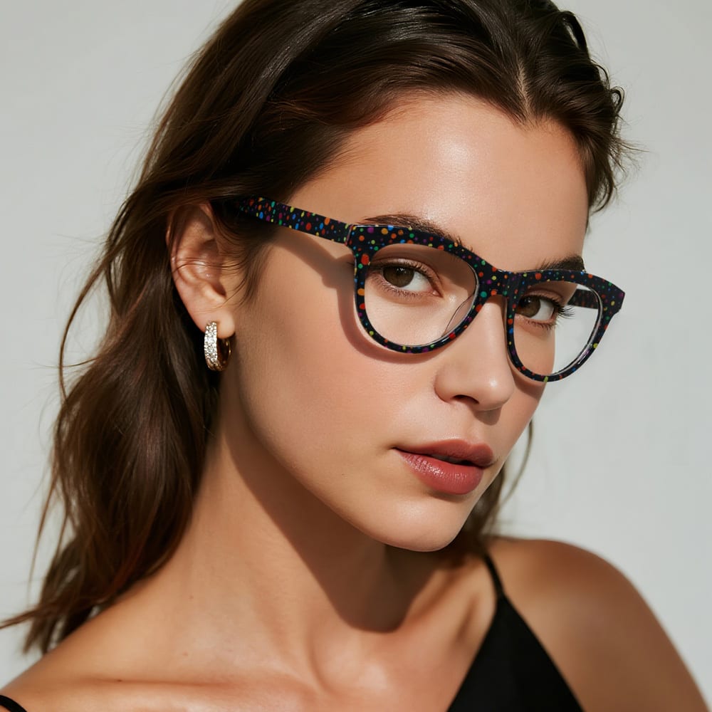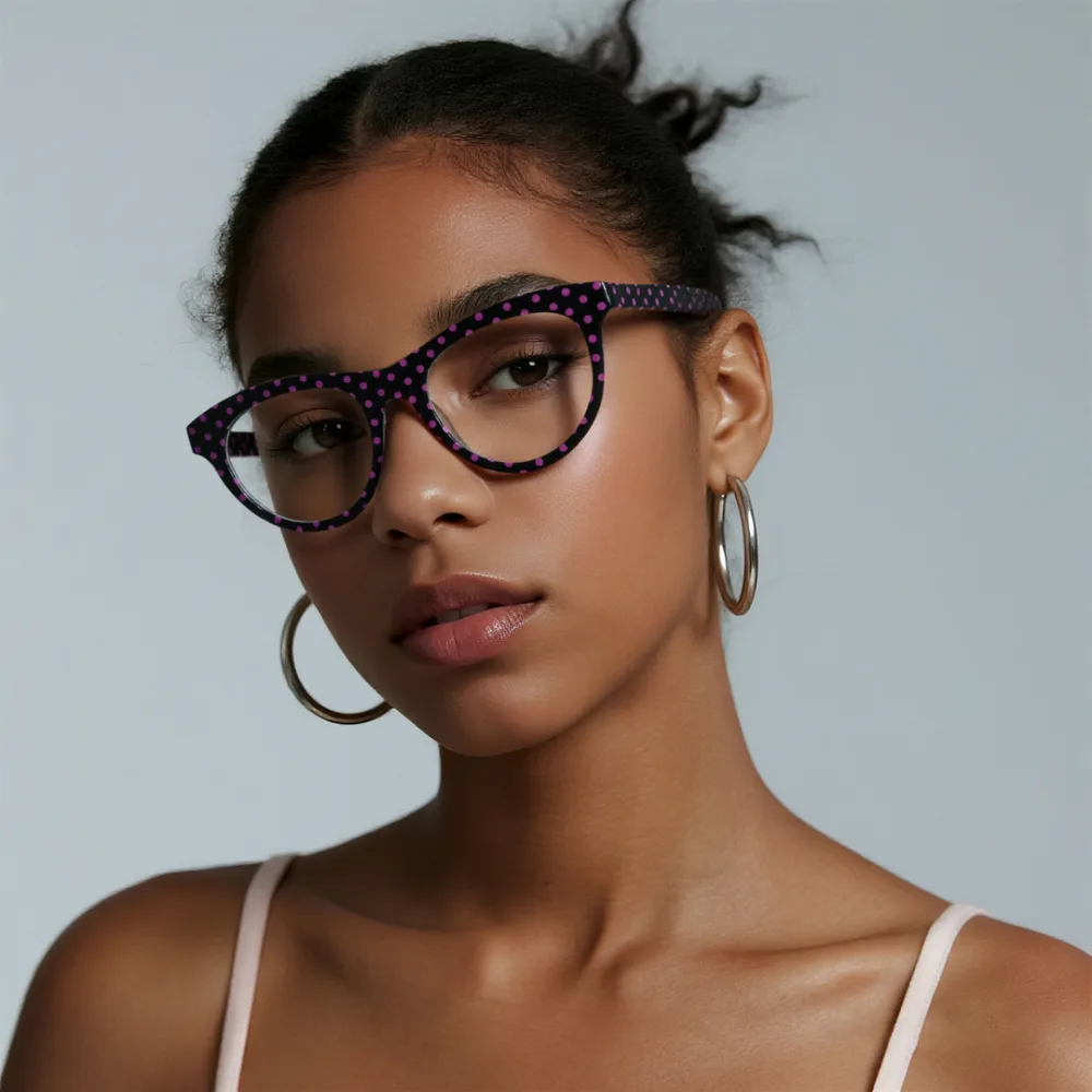 Hey style mavens! These eyeglass frames are a must-have for your everyday rotation. With a sleek round frame silhouette and a sophisticated understated polka dot color, they effortlessly elevate any look. The standout perk? Ultra-soft temple arms that stay comfy against your skin, no matter how long you wear them. Perfect for café work hours, weekend strolls, or evening hangouts—timeless style that fits every moment of your day.