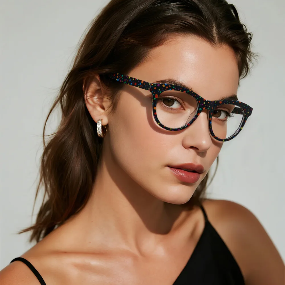 Hey style mavens! These eyeglass frames are a must-have for your everyday rotation. With a sleek round frame silhouette and a sophisticated understated polka dot color, they effortlessly elevate any look. The standout perk? Ultra-soft temple arms that stay comfy against your skin, no matter how long you wear them. Perfect for café work hours, weekend strolls, or evening hangouts—timeless style that fits every moment of your day.