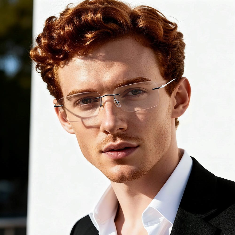 Wow, this pair of eyeglasses is a total game-changer! Designed in a sleek silver finish with a minimalist rimless frame, it’s crafted from lightweight titanium (only 17g) for all-day comfort. Perfect for both business settings and daily wear, it fits large face sizes (PD 64-70), blending practicality with a polished, professional aesthetic effortlessly.