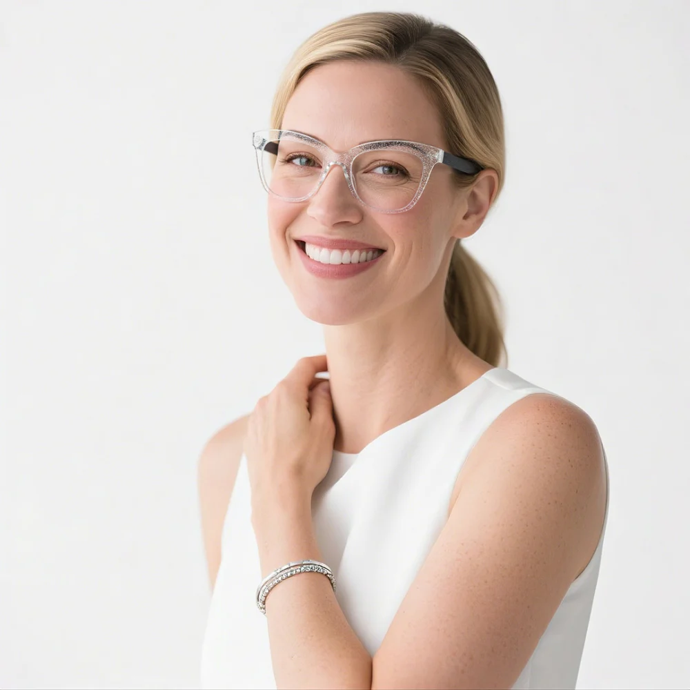 Be stylish, be yourself! Offering a simple design with rectangle rims and a firm bridge connecting the rims, Taliesin is modest and trendy. You may notice the transparent property, especially in the temple area, revealing its inner structure, adding a sophisticated vibe to your look. Equipped with crafty hinges and minimalist temples all the way to the well-curved tips, you may be instantly comfortable wearing it. Made out of TR90, a thermoplastic material, these glasses are not only light and flexible but also very durable. Taliesin is available in three color options: blue, brown, and red, each of which is slightly adorned with little sparkle spots sprinkling the whole frame. Choose one that best represents yourself!