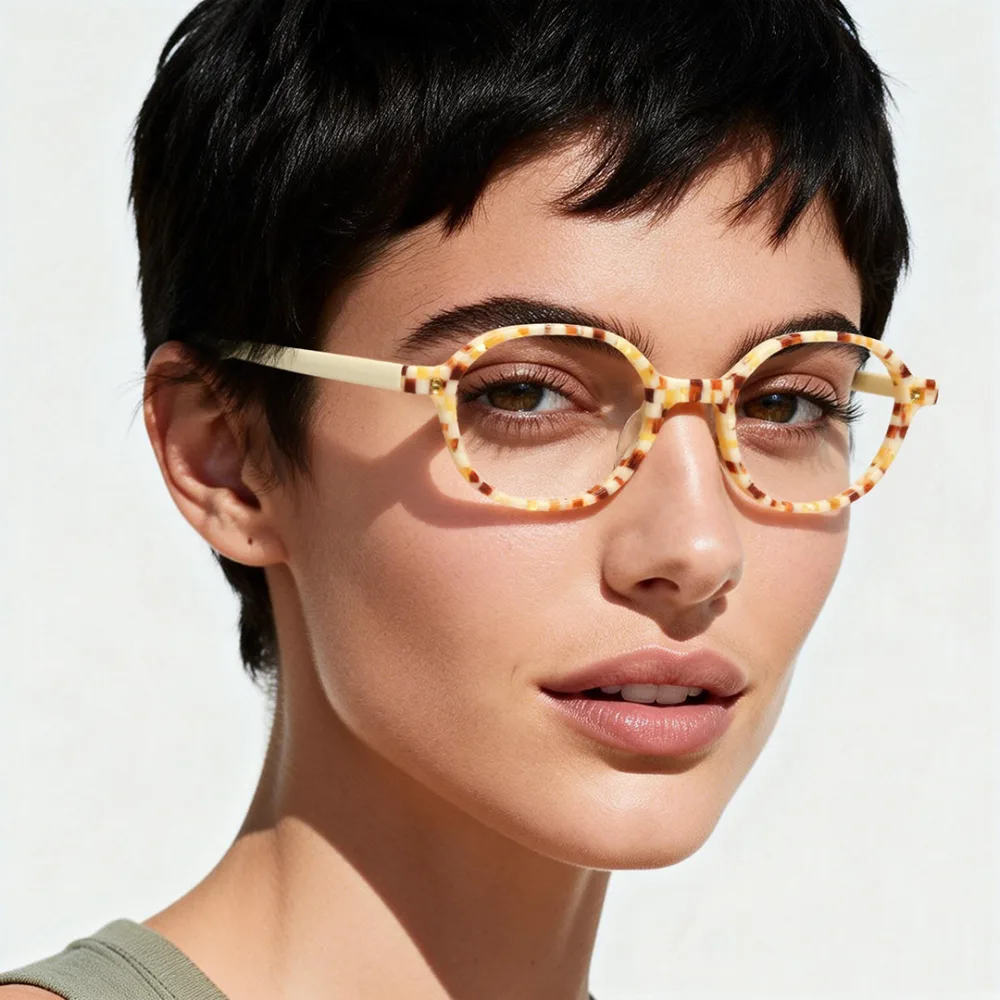 Hey everyone, this eyeglass frame is such a gem—you’ll love it! It has a full-rim style and comes in fun colors: floral, black, blue, brown, green, red, tortoiseshell, and more, so there’s one for every taste. Made of plastic with a floral acetate vibe, it’s super lightweight at just 15g—perfect for daily wear, whether you’re working, running errands, or hanging out. It works with progressive lenses too, blending style and practicality seamlessly!