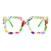 Frames may ship with non-optical filler lenses(clear or colored),which often have writing on them.