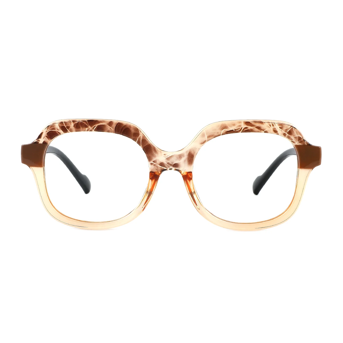 Looking for a touch of elegance in your everyday eyewear? These eyeglasses feature a stunning translucent brown frame with subtle warm tones, adding depth and sophistication to your look. The rectangular shape is both timeless and versatile, offering a clean and polished style that suits professional and casual settings alike. Lightweight yet durable, these frames ensure all-day comfort, making them perfect for long hours at work or leisurely outings. Their sleek design and neutral color make them an effortlessly stylish choice for any occasion.