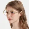 Be explorative with Lucy. Talking about looking elegant but catchy, Lucy may offer just the right vibe for you. The slender design with round rims, a firm golden bridge, and slim temples radiate elegance. You won't miss the half rainbow ornaments covering the upper part of the rims, enhancing your cheerful look. The rainbow color may expose your explorative side, giving away a welcoming impression. Made out of metal Lucy is sturdy and durable. Its lenses can be personalized to progressive or bifocal, so you may find immediate comfort wearing it.