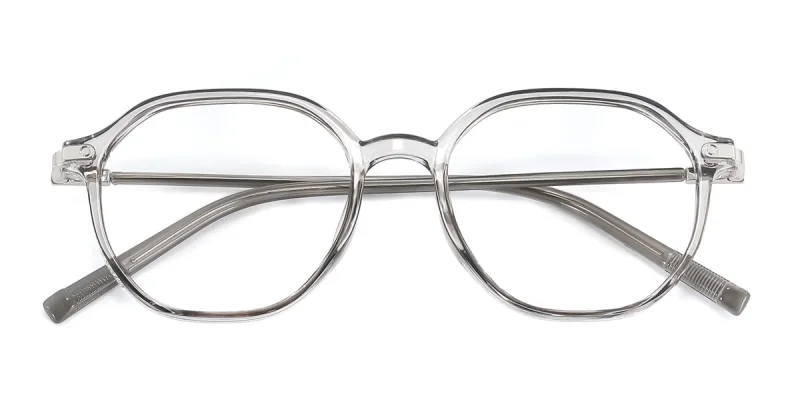 Lenses that darken (gray/amber) when exposed to outside light and remain clear inside